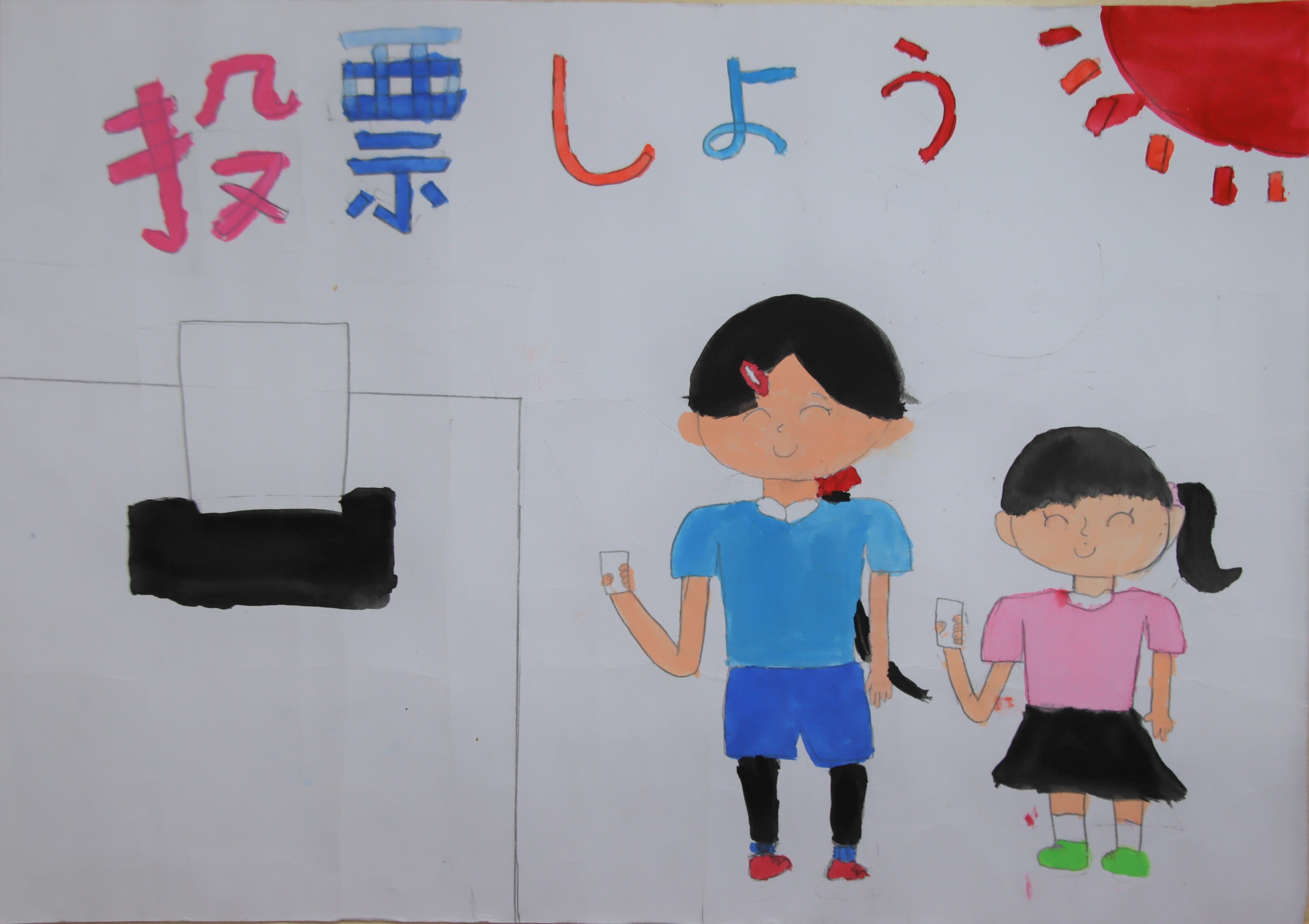 選挙期間、親が投票に行く時に一緒について行った。投票することへの憧れもあり、18歳になったら投票したいという前向きな思いが込められている。